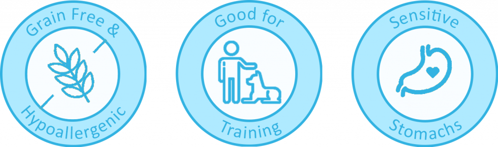 nourish’s Fish-shaped training treats for dogs and puppies contain 80% Freshly prepared and gently seam cooked fish. These tasty treats contain no added synthetic flavourings or colourants and are completely grain free.